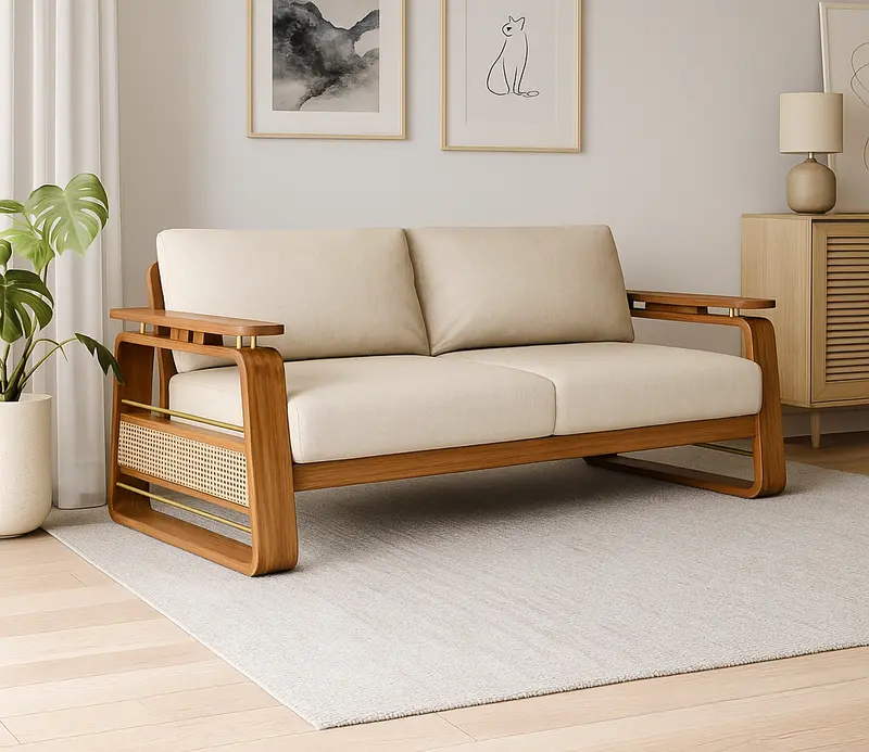 Oslo Mahogany Wooden Sofa with Teak Finish, High Density Cushion With Spring